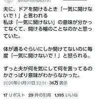 夫に、ドアを開けるとき「一気に開けないで!」って言われる