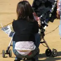 【画像】公園の子連れママ、ローライズで白レースの無防備パンチラ