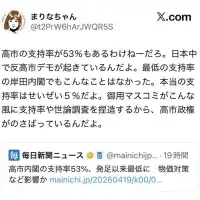 パさん「高市の支持率が53%もあるわけねーだろ。日本中で反高市デモが起きているんだよ」