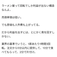 ラーメン屋は13分以内に食べ終わって2分で退店しないと利益出ないそうです