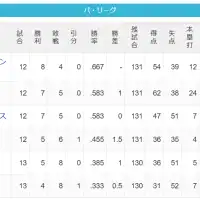 【4/10】パ・リーグ順位表|本日はお休み…日ハムの現在順位がこちら