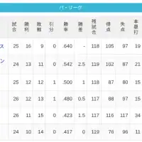 【4/24】パ・リーグ順位表|借金2か…日ハムの現在順位がこちら